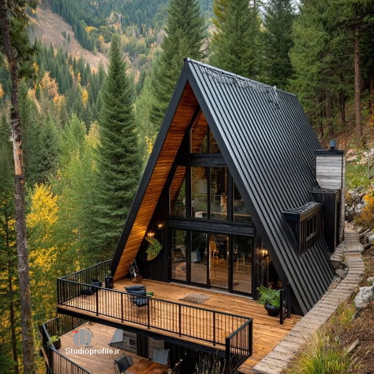 | شکل ظاهری | دیوارهای کنده چوبی افقی، نمای روستیک و سنتی | فرم مثلثی، سقف بسیار شیبدار، نمای مدرن و مینیمال |